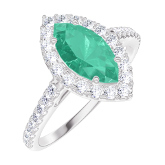 Anillo Oro blanco 9 quilates - Esmeralda sintética Marquesa 0.5 quilates - Halo Diamante de laboratorio - Engastado Diamante de laboratorio