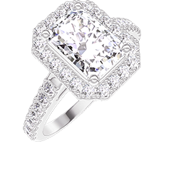 Anillo Oro blanco 9 quilates - Diamante de laboratorio Rectángulo 1 quilates - Halo Diamante de laboratorio - Engastado Diamante de laboratorio