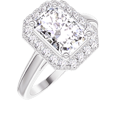 Anillo Oro blanco 9 quilates - Diamante de laboratorio Rectángulo 1 quilates - Halo Diamante de laboratorio