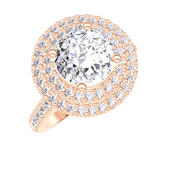 Anillo Oro rosa 18 quilates - Diamante Redondo 1 quilates - Halo Diamante - Engastado Diamante