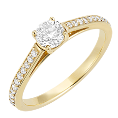 Anillo Oro amarillo 18 quilates - Diamante redondo 0.3 quilates - Engastado Diamante