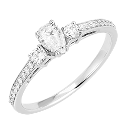 Anillo Oro blanco 9 quilates - Diamante Pera 0.3 quilates - Piedras laterales Diamante - Engastado Diamante