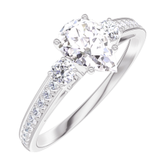 Anillo Oro blanco 9 quilates - Diamante Pera 0.5 quilates - Piedras laterales Diamante - Engastado Diamante