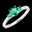 Este delicado anillo en oro blanco 18 quilates presenta una esmeralda redonda central de 0,5 quilates, acompañada por dos esmeraldas laterales de calidad Very Good.