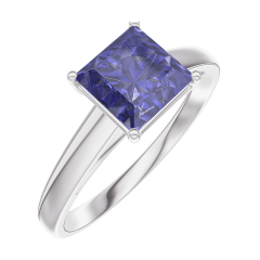 Anillo Oro blanco 18 quilates - Zafiro azul Princesa 1 quilates