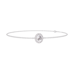 « L'ATELIER » N.º 200108Pulsera Oro blanco 9 quilates - Diamante Ovalo 0.3 quilates - Halo Diamante - Cadenas Esclavas