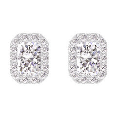 Pendientes Oro blanco 18 quilates - Diamante Rectángulo 0.3 quilates (2 X) - Halo Diamante