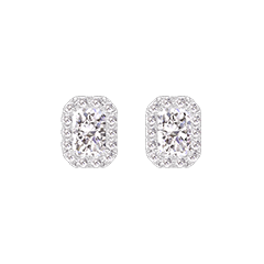 Pendientes Oro blanco 9 quilates - Diamante de laboratorio Rectángulo 0.3 quilates (2 X) - Halo Diamante de laboratorio