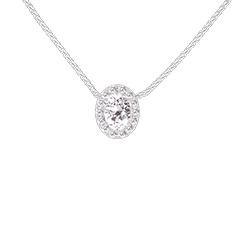 Collar Oro blanco 18 quilates - Diamante de laboratorio Ovalo 0.3 quilates - Halo Diamante de laboratorio - Cadenas Veneciana