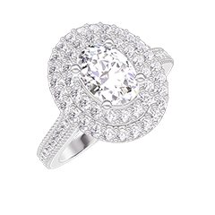 Anillo Oro blanco 18 quilates - Diamante Ovalo 0.5 quilates - Halo Diamante - Engastado Diamante