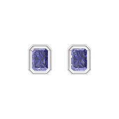Pendientes Oro blanco 9 quilates - Zafiro azul Rectángulo 0.3 quilates (2 X)