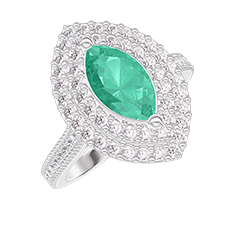 Anillo Oro blanco 18 quilates - Esmeralda Marquesa 0.5 quilates - Halo Diamante - Engastado Diamante