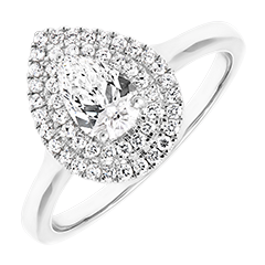 Anillo Oro blanco 9 quilates - Diamante de laboratorio Pera 0.5 quilates - Halo Diamante de laboratorio