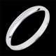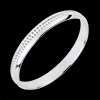 No, esta creación es sin piedras, destacando la pureza y brillo del oro blanco.