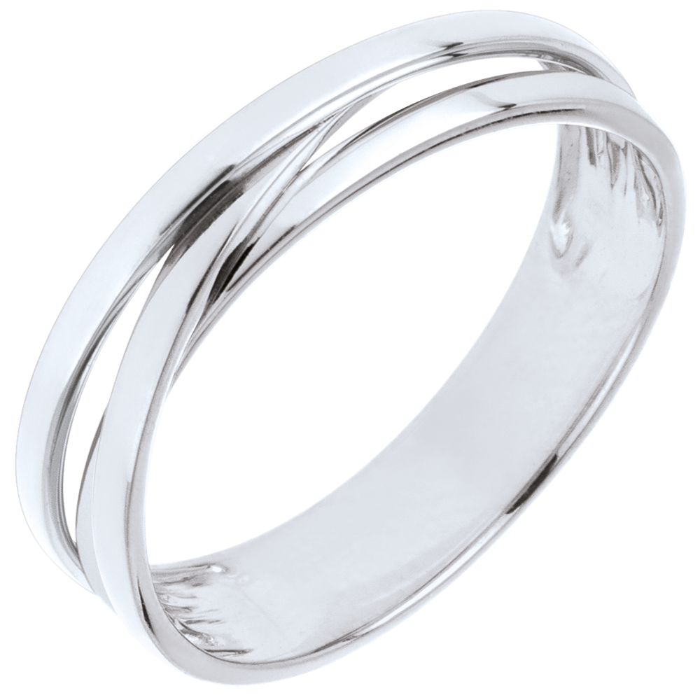 Una trilogía de aros de oro blanco enlazados dan lugar a una alianza parece estar en un constante y delicado movimiento.