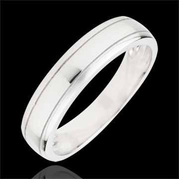 Una alianza cinta de oro blanco al decorado horizontal clásico e intemporal.