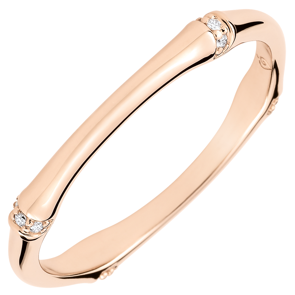 Una rama de bambú flexible y sólida se transforma en un anillo de oro rosa eterno, pavimentada de diamantes.