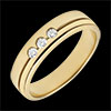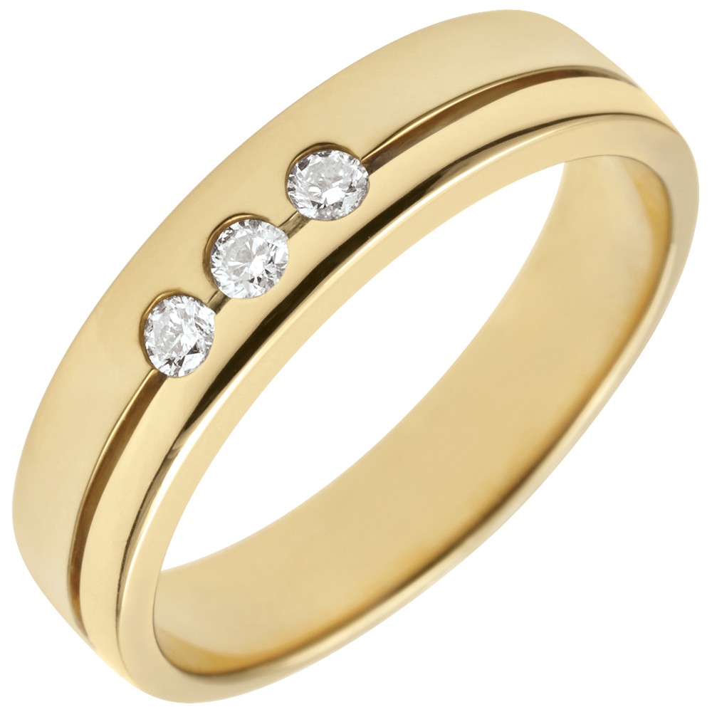 Esta alianza con un diseño de alianza doble realzado por una línea horizontal que la divide en dos y en cuyo centro se aloja una trilogía de diamantes.