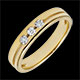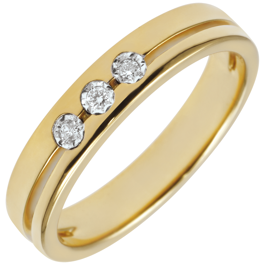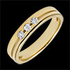 Esta alianza con un diseño de alianza doble realzado por una línea horizontal que la divide en dos y en cuyo centro se aloja una trilogía de diamantes.