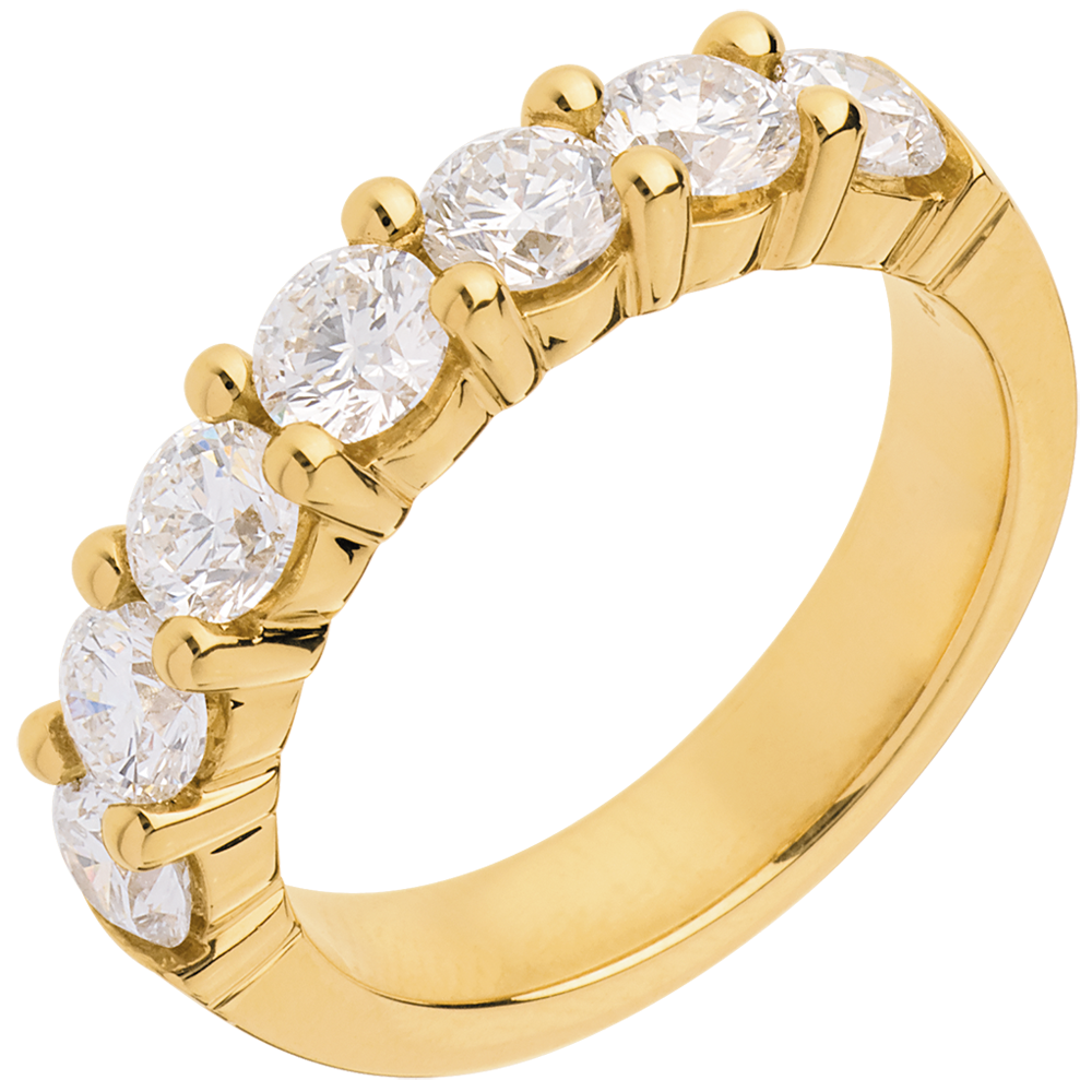 Alianza oro amarillo semi empedrado - engaste garras - 1.57 quilates - 7 diamantes