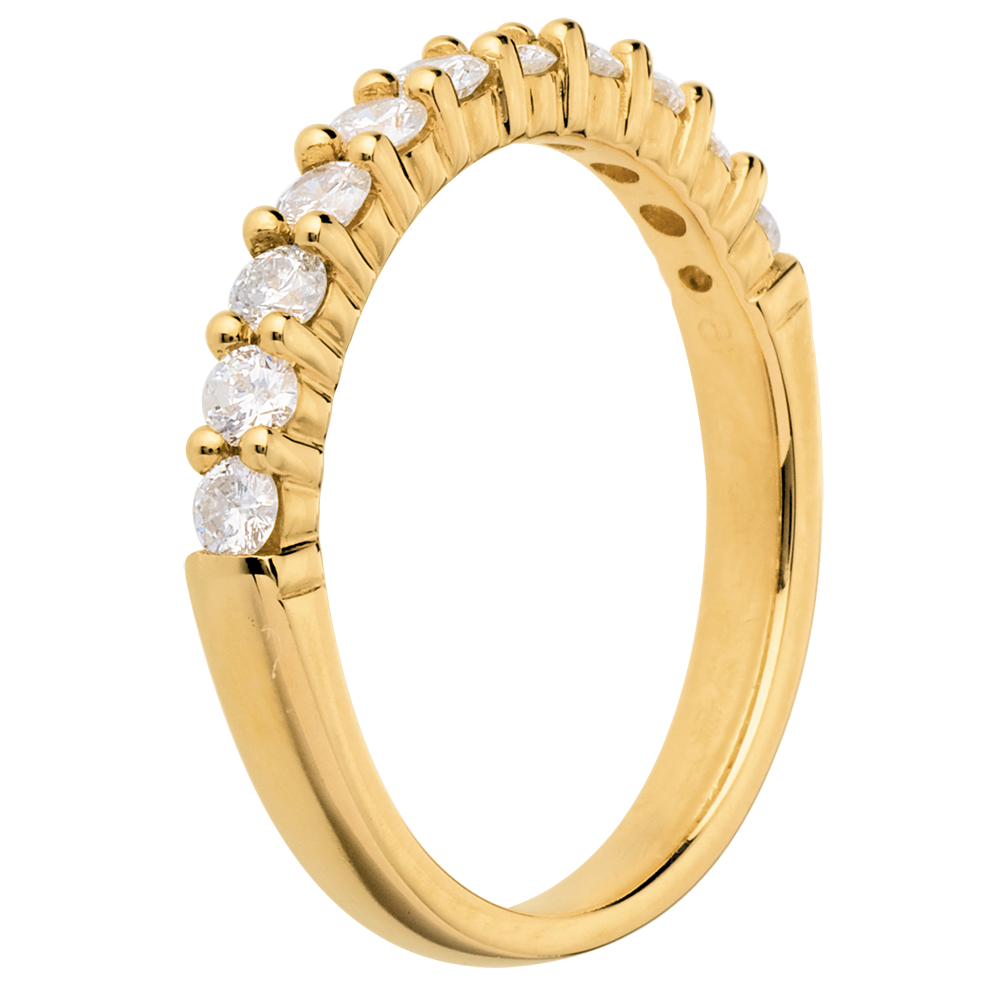 Alianza oro amarillo semi empedrado - engaste garras - 0.5 quilates - 11 diamantes