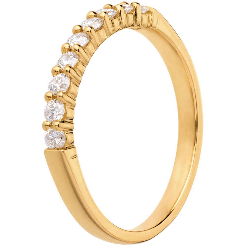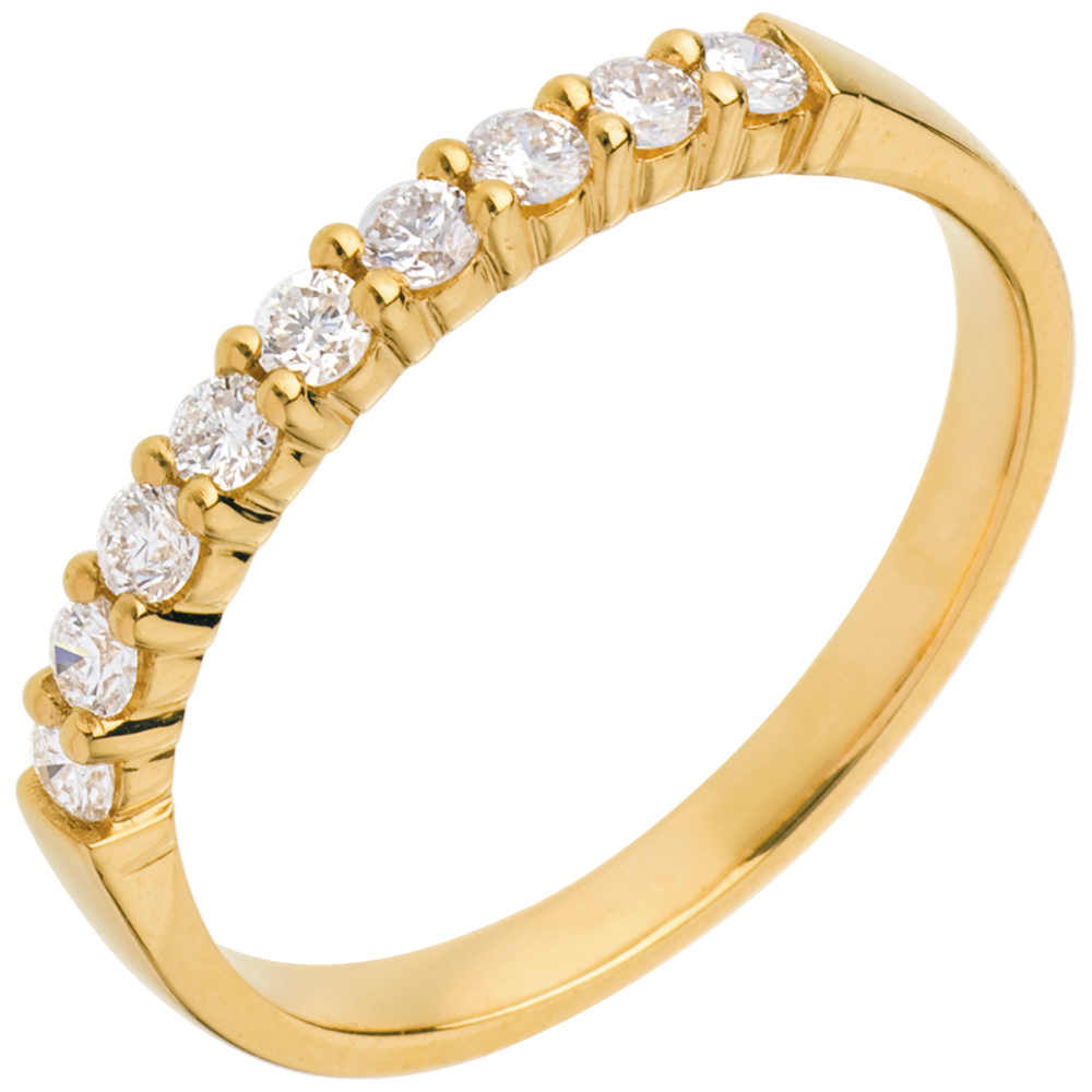 Alianza oro amarillo semi empedrado - engaste garras - 0.3 quilates - 9 diamantes