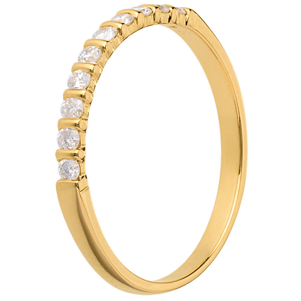Alianza oro amarillo semi empedrado - engaste pasador - 10 diamantes