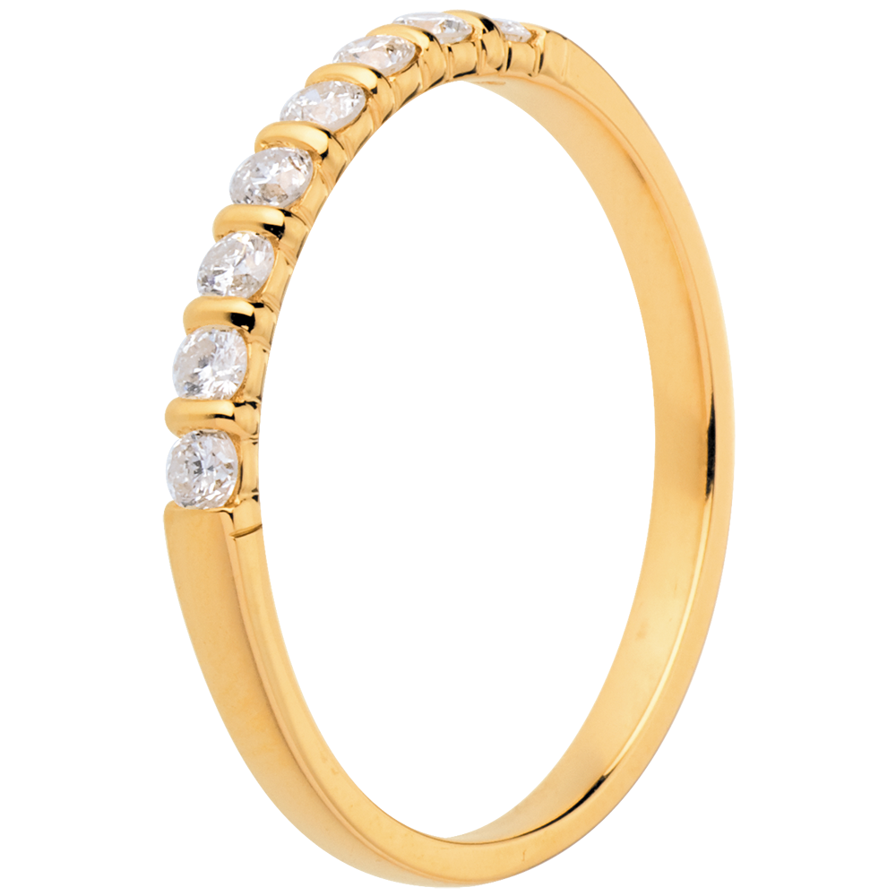 Alianza oro amarillo semi empedrado - engaste pasador - 0.25 quilates - 8 diamantes