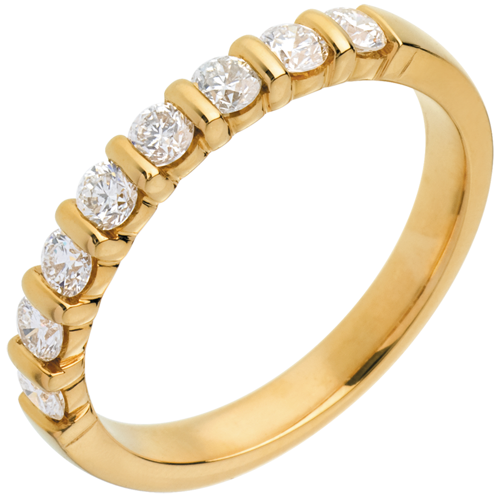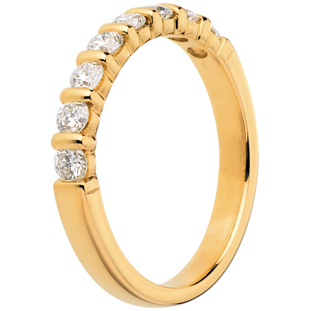 Alianza oro amarillo semi empedrado - engaste pasador - 0.5 quilates - 8 diamantes