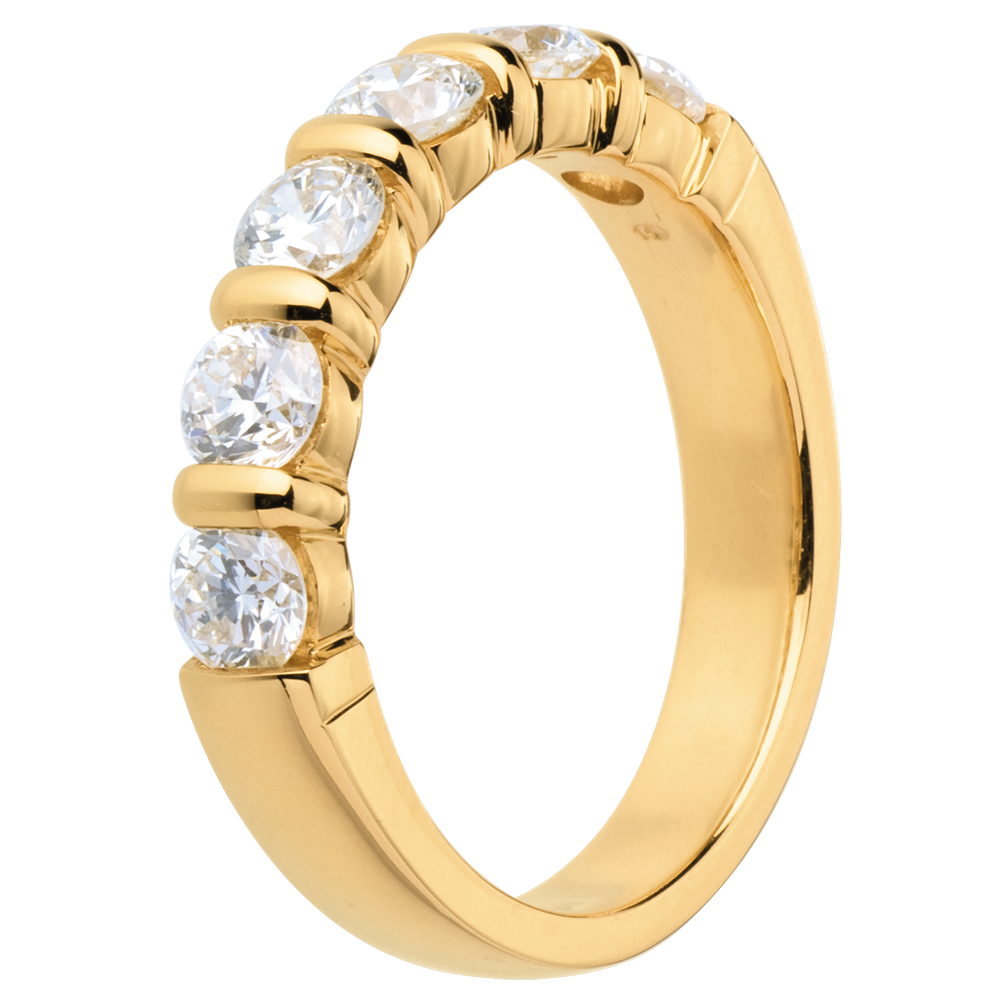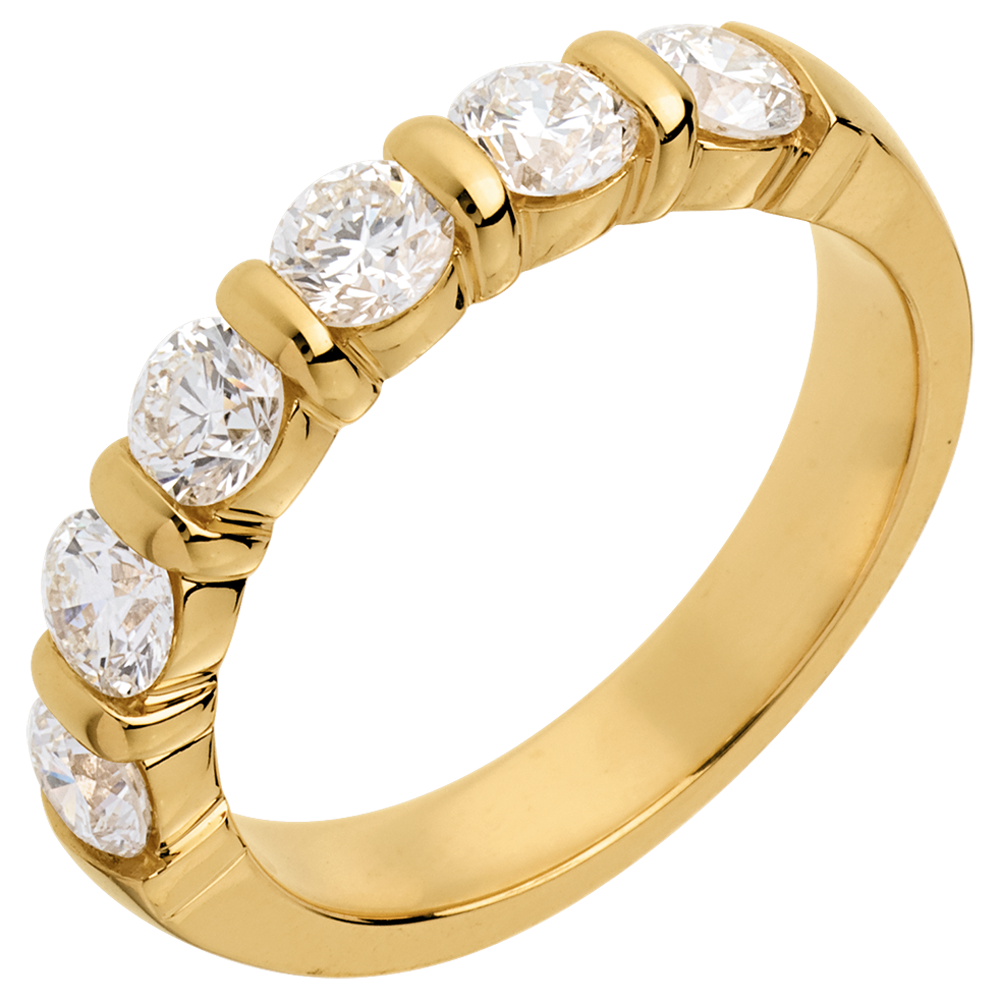 Alianza oro amarillo semi empedrado - engaste pasador - 1.2 quilates - 6 diamantes