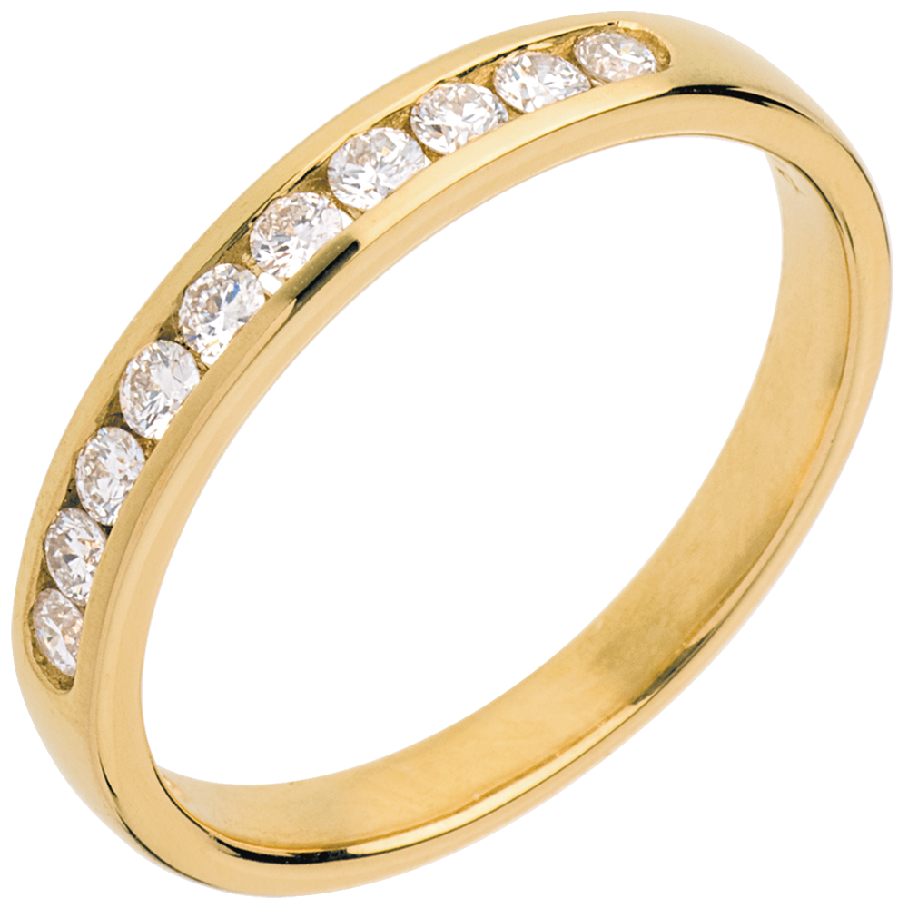 Alianza oro amarillo semi empedrado - engaste raíl - 0.25 quilates - 10 diamantes