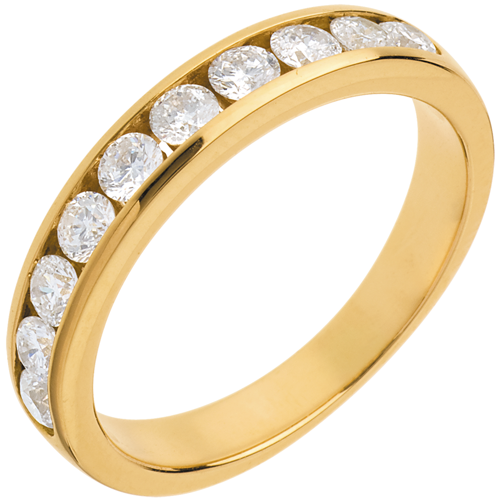 Alianza oro amarillo semi empedrado - engaste raíl - 0.65 quilates - 10 diamantes