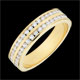 El equilibrio perfecto de un aro de oro amarillo con 2 hileras de diamantes redondos con engaste de carril consigue transmitir un fuerte simbolismo. Una joya ineludible para sellar un enlace de excepción.