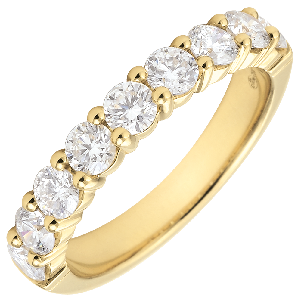 Elegante y brillante al máximo.Una alianza de oro amarillo con 9 diamantes engarzados que hacen de este anillo una joya eterna y resplandeciente.