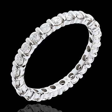 Alianza oro blanco empedrado - engaste pasador - 1.14 quilates - 22 diamantes