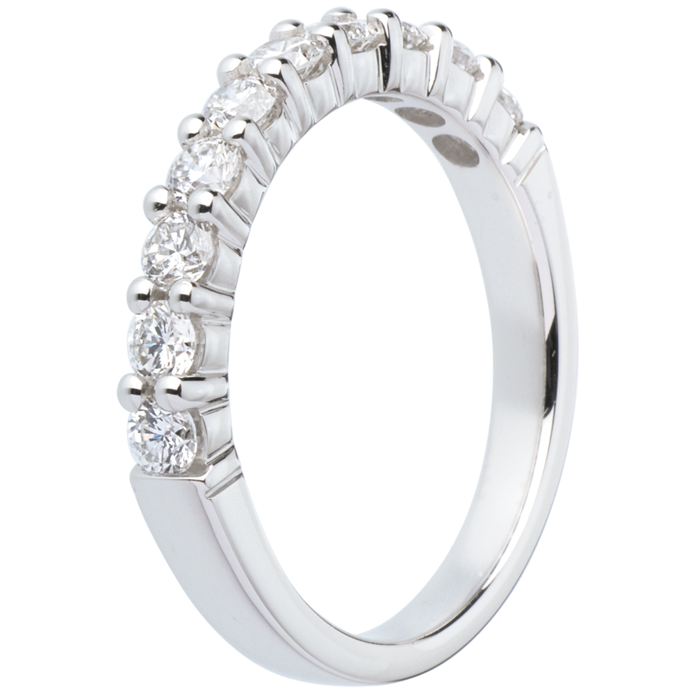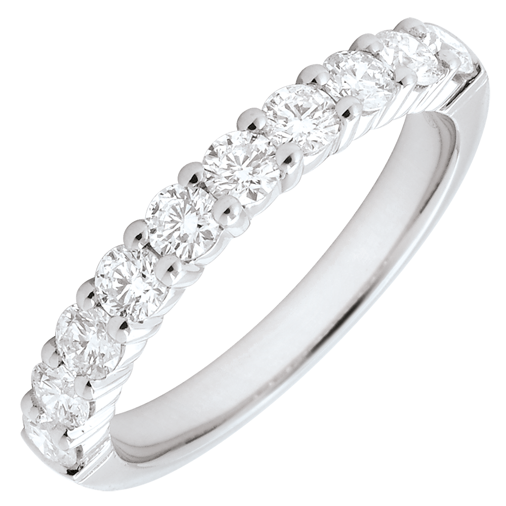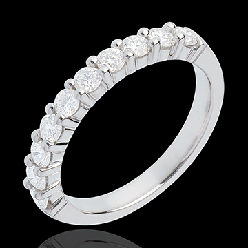 Alianza oro blanco semi empedrado - engaste garras - 0.65 quilates - 10 diamantes