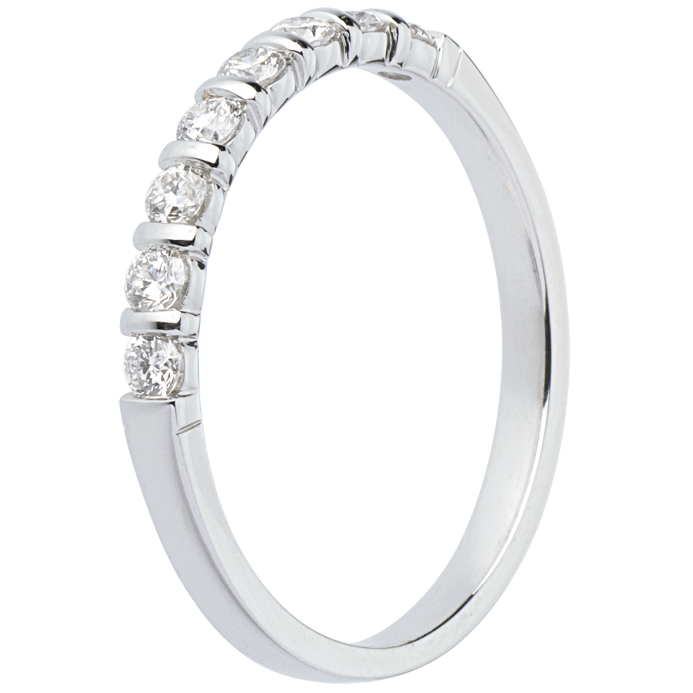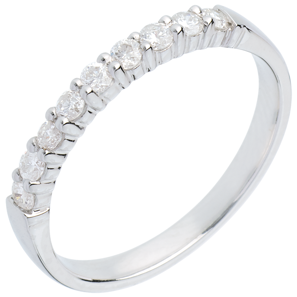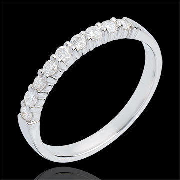 Alianza oro blanco semi empedrado - engaste garras - 0.3 quilates - 9 diamantes