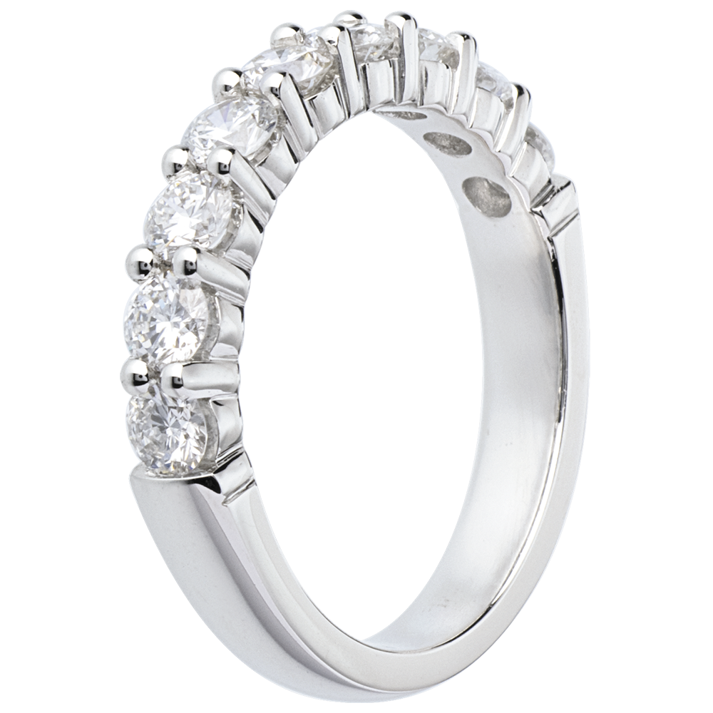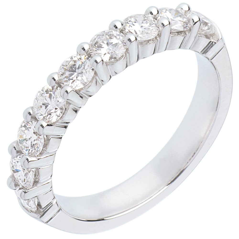 Alianza oro blanco semi empedrado - engaste garras - 1 quilates - 9 diamantes