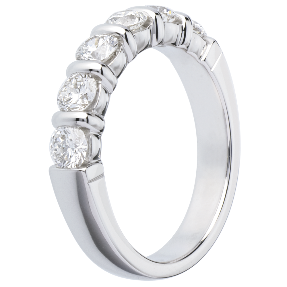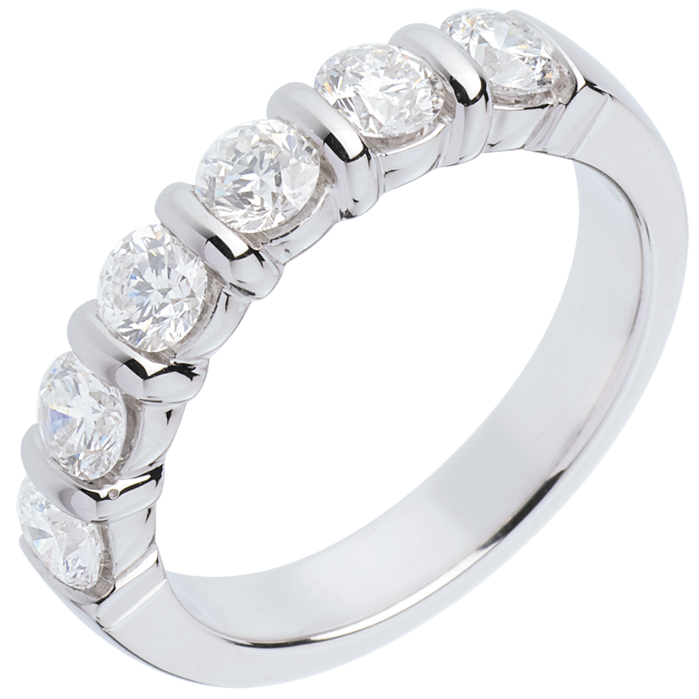 Alianza oro blanco semi empedrado - engaste pasador - 1 quilates - 6 diamantes