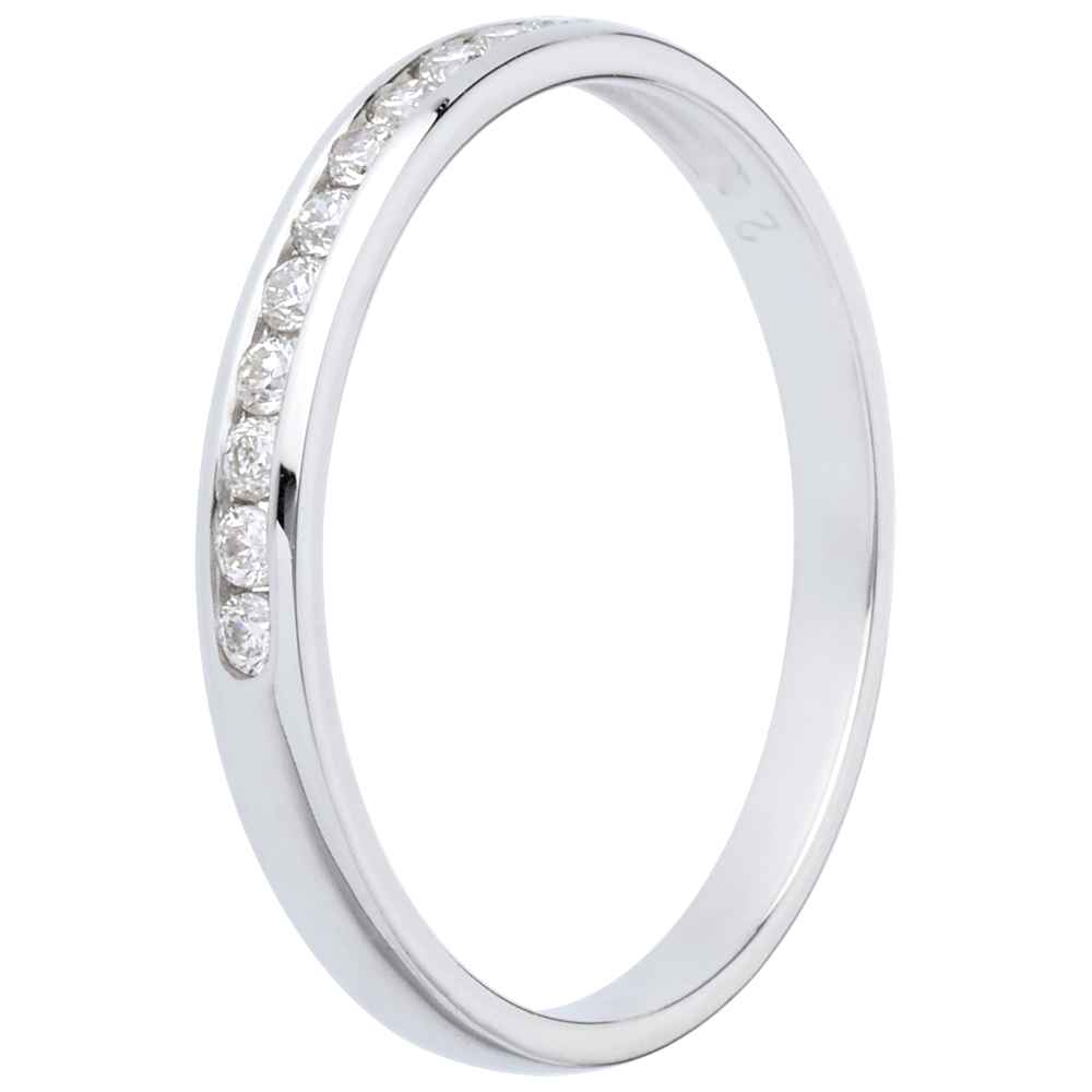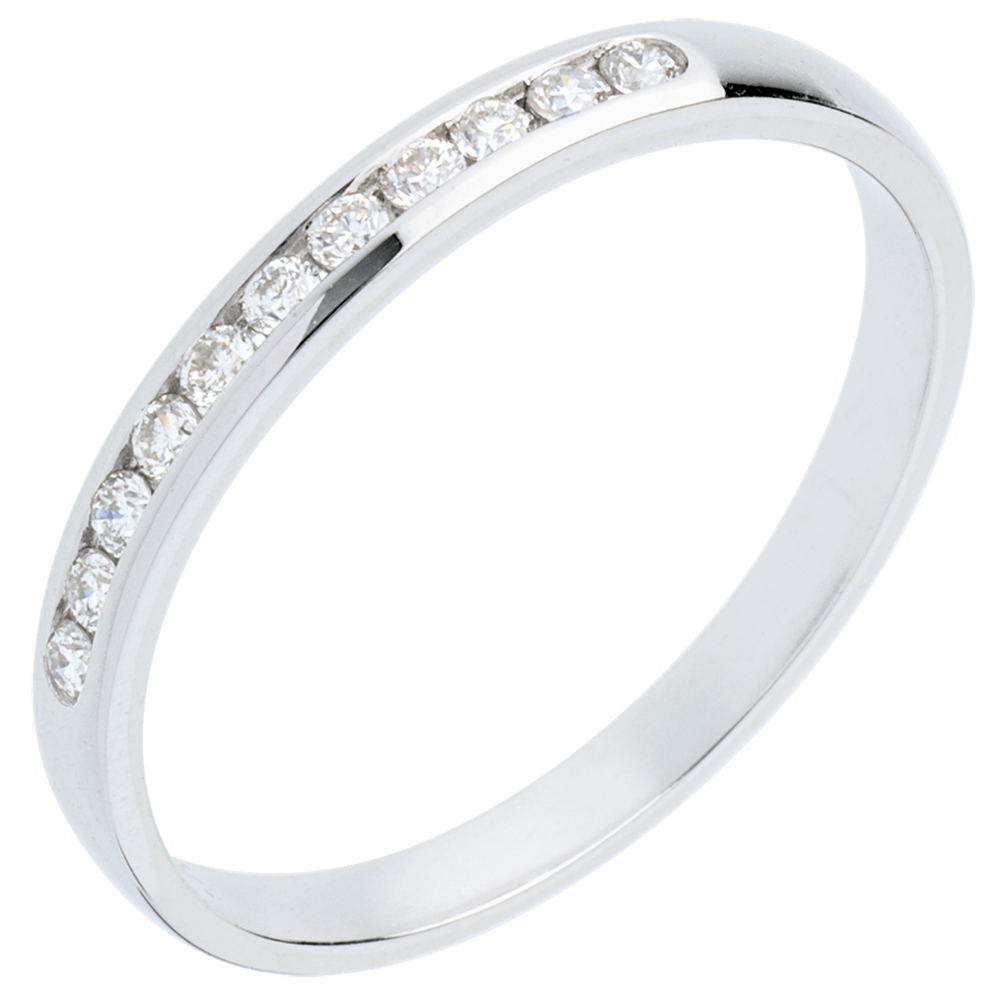 Alianza oro blanco semi empedrado - engaste raíl - 11 diamantes