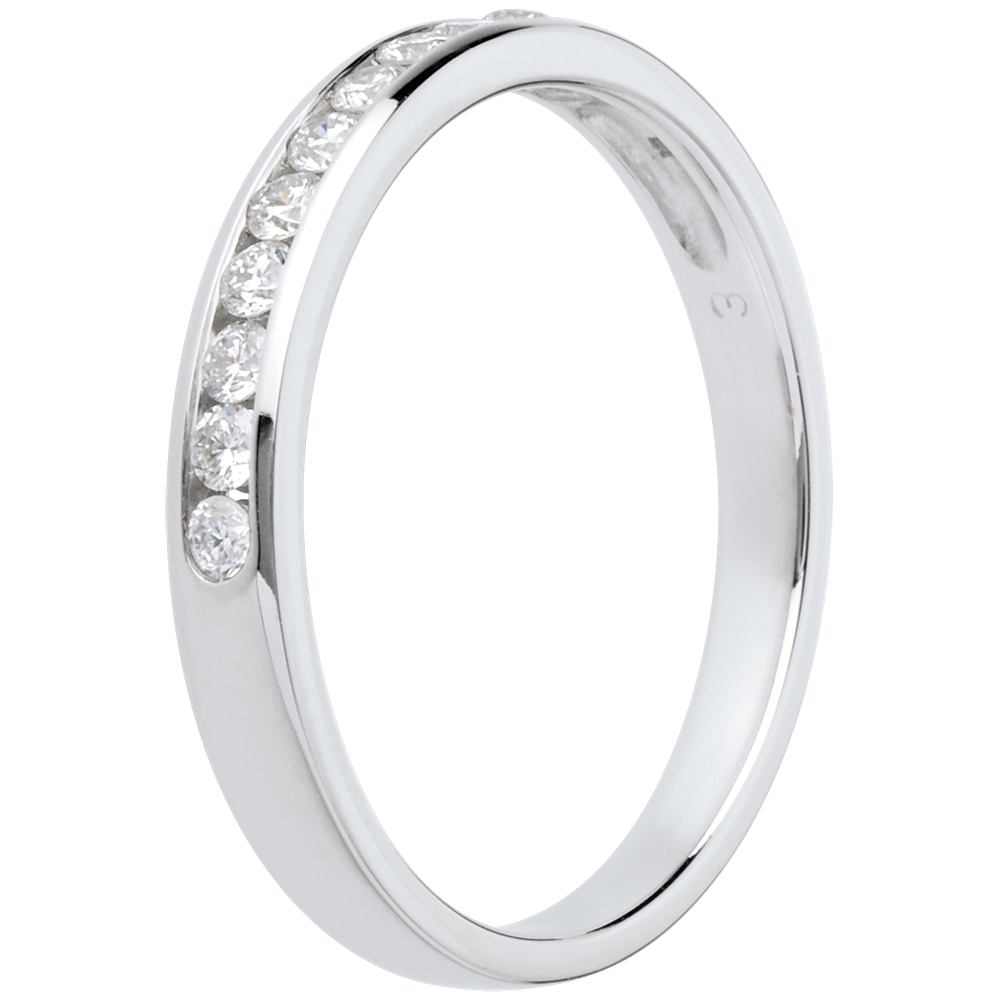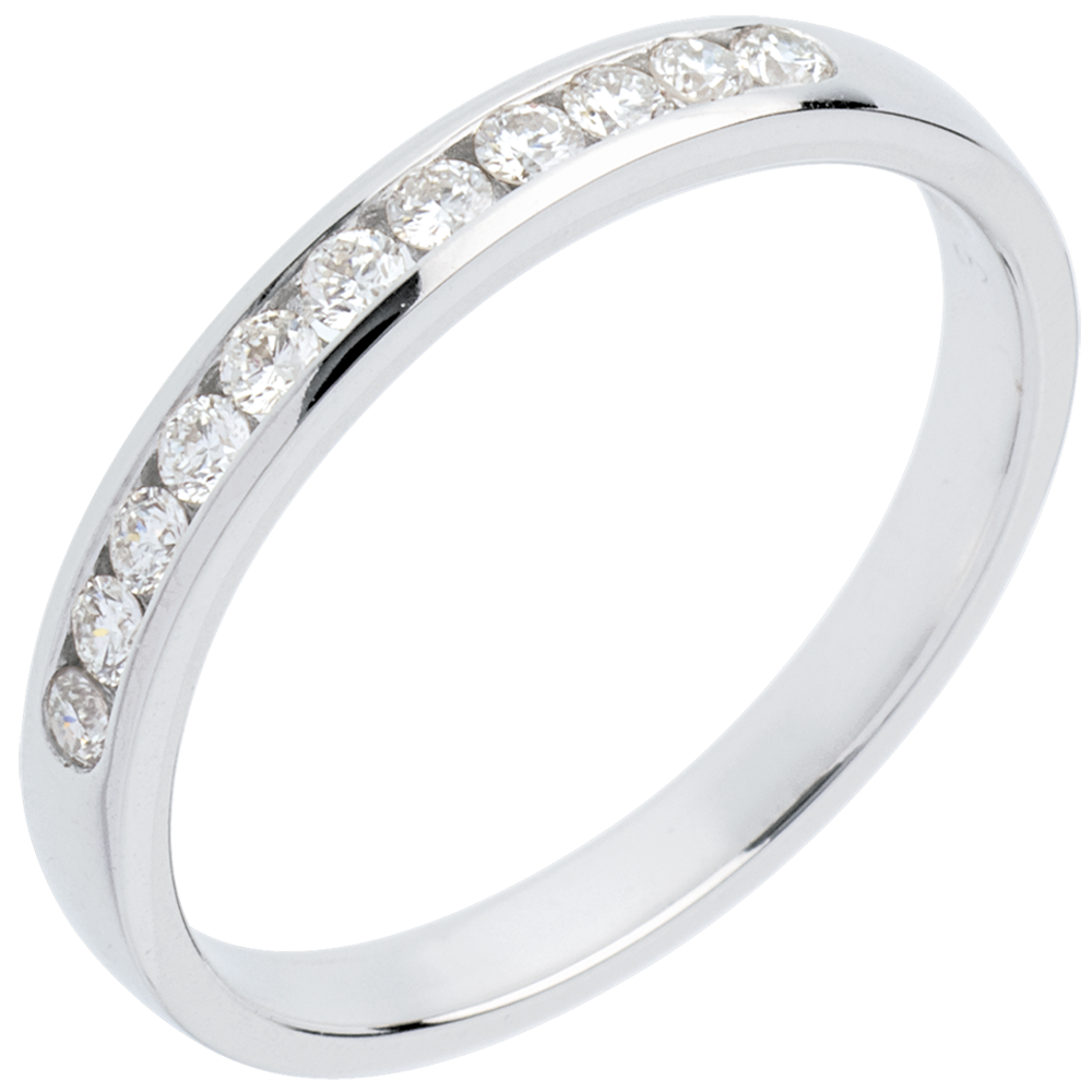 Alianza oro blanco semi empedrado - engaste raíl - 11 diamantes: 0.2 quilates