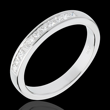 Alianza oro blanco semi empedrado - engaste raíl - 0.31 quilates - 11 diamantes
