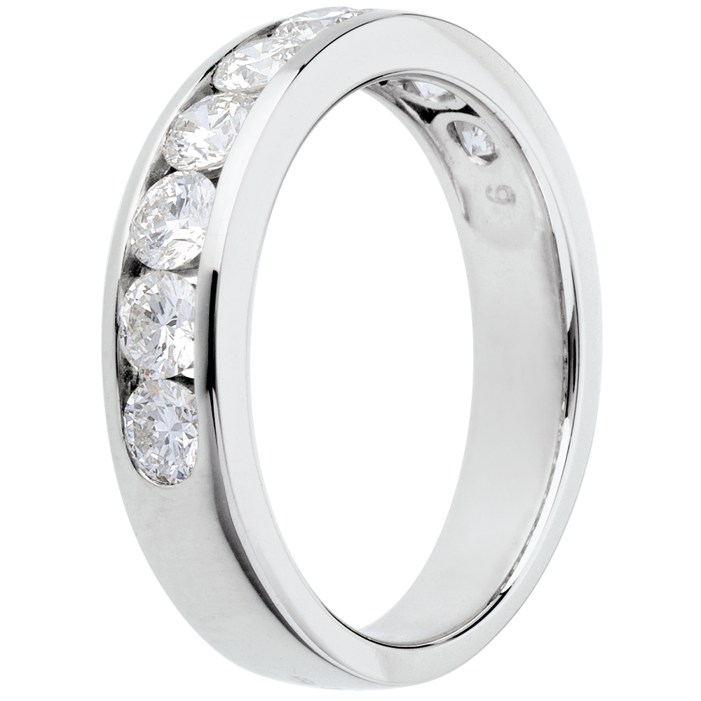 Alianza oro blanco semi empedrado - engaste raíl - 1 quilates - 9 diamantes