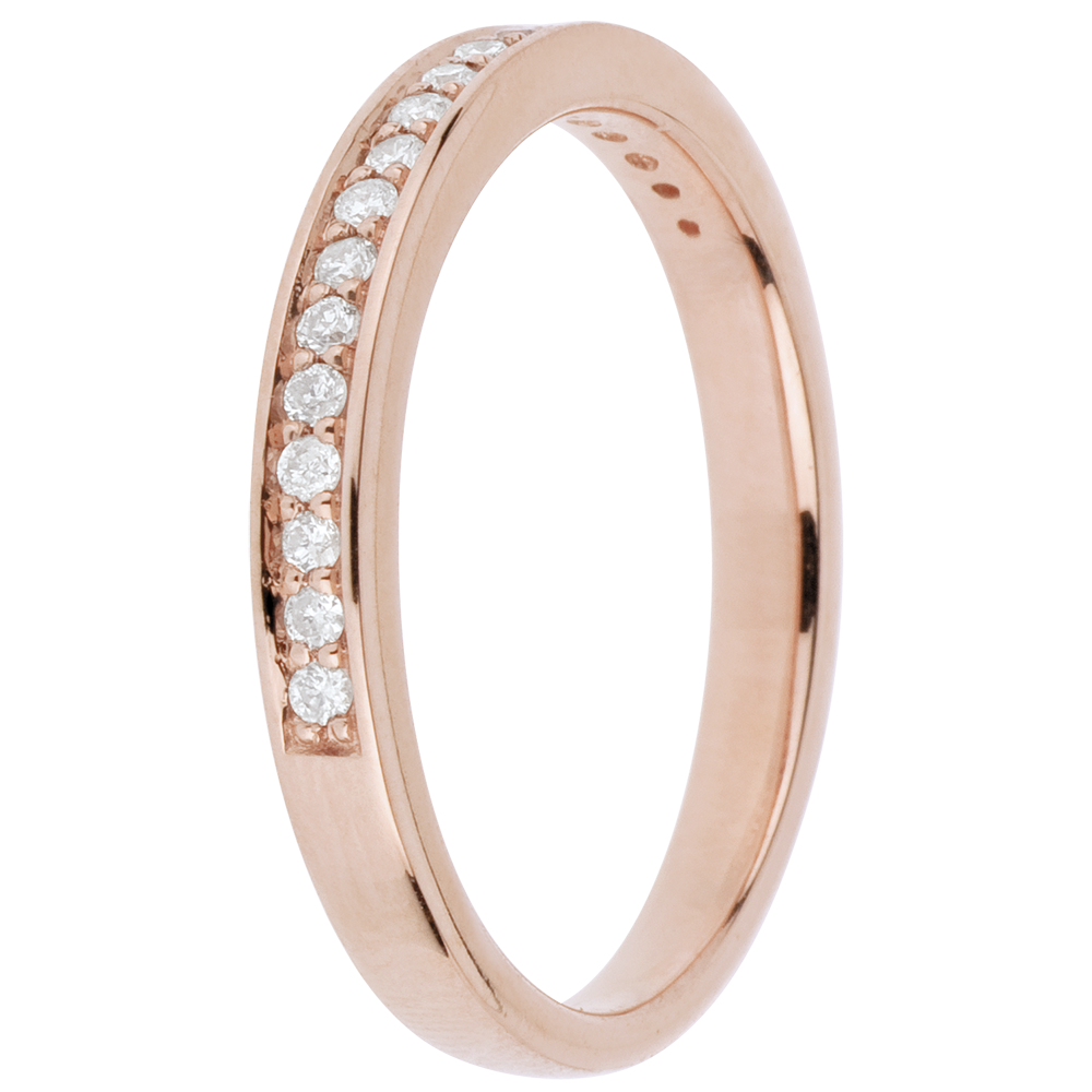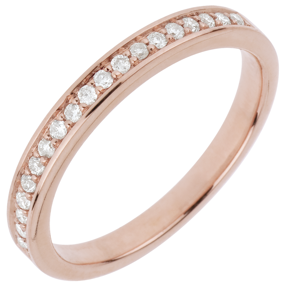 Un anillo en oro rosa con diamantes talla brillante que le confieren elegancia y originalidad.