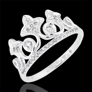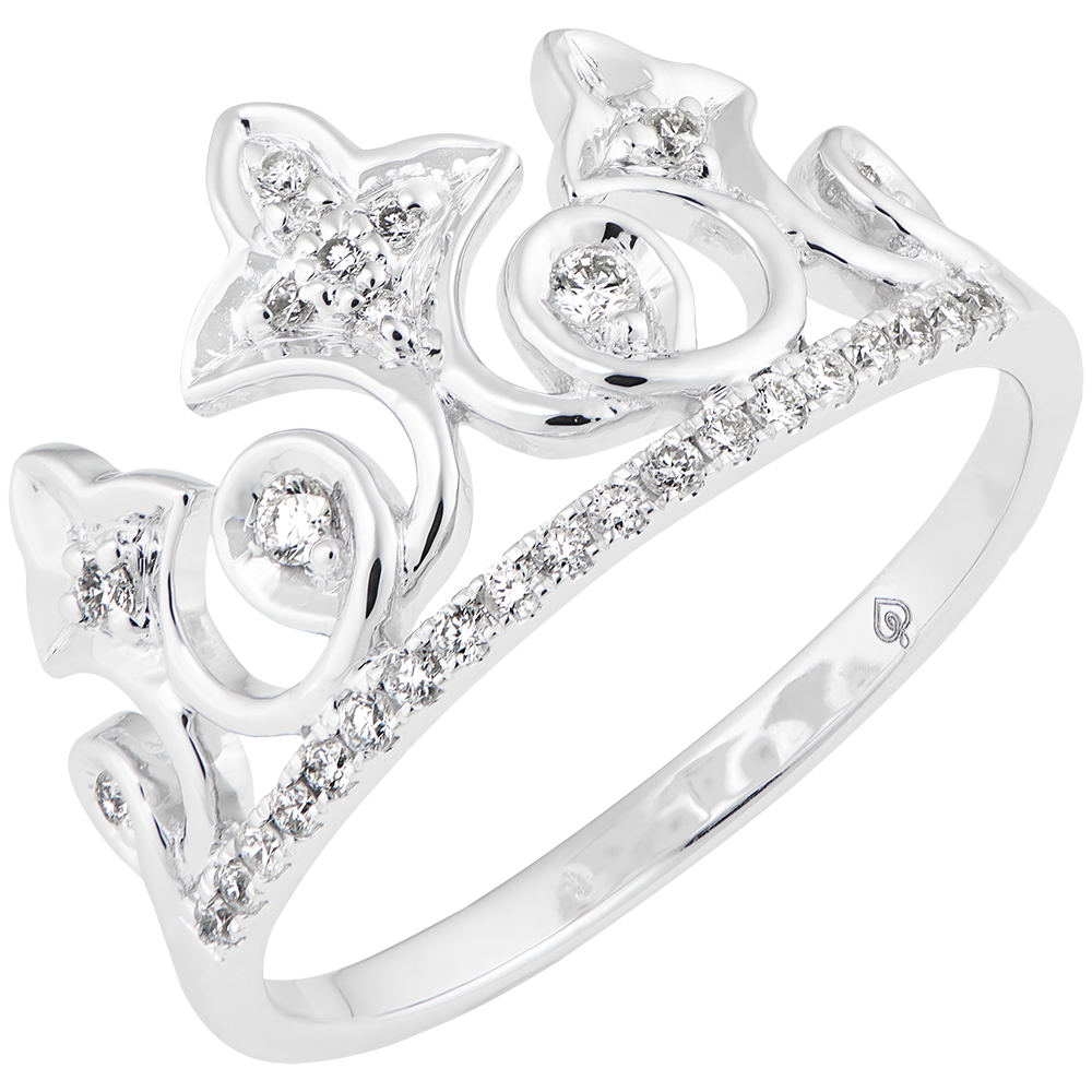 Un anillo coronado y empedrado de diamantes para celebrar el ser sagrado. Un modelo declarativo, con aires de princesa!