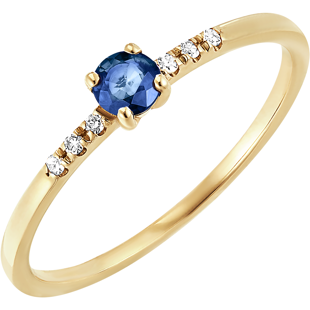 La elegancia y la esencia de un zafiro colocado con sobriedad sobre un anillo de oro amarillo adornado con 6 diamantes. Una joya clásica y atemporal con un toque de color.