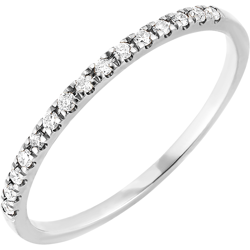 Un anillo de boda de oro blanco elegante y atemporal adornado con delicados diamantes. Este anillo de boda es ideal para llevar con un anillo de compromiso o por sí solo.