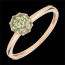 Este delicado anillo fino está elaborado en oro rosa de 9 quilates y decorado con 25 tsavoritas verdes que forman una elegante bola. Inspirado en el vuelo colorido de aves exóticas, refleja feminidad y un estilo minimalista refinado.