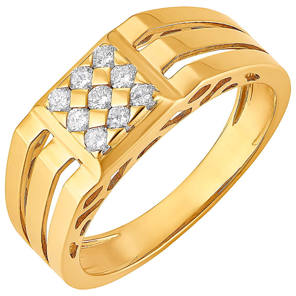 Un Anillo de Sello cuya base de oro amarillo está delicadamente tallada y cuyo centro está generosamente cubierto con 9 diamantes.…