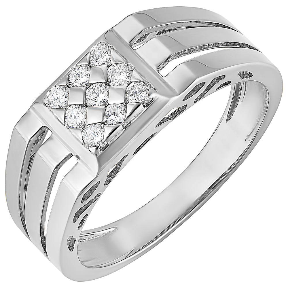Un Anillo de Sello cuya base de oro blanco está delicadamente tallada y cuyo centro está generosamente cubierto con 9 diamantes.…